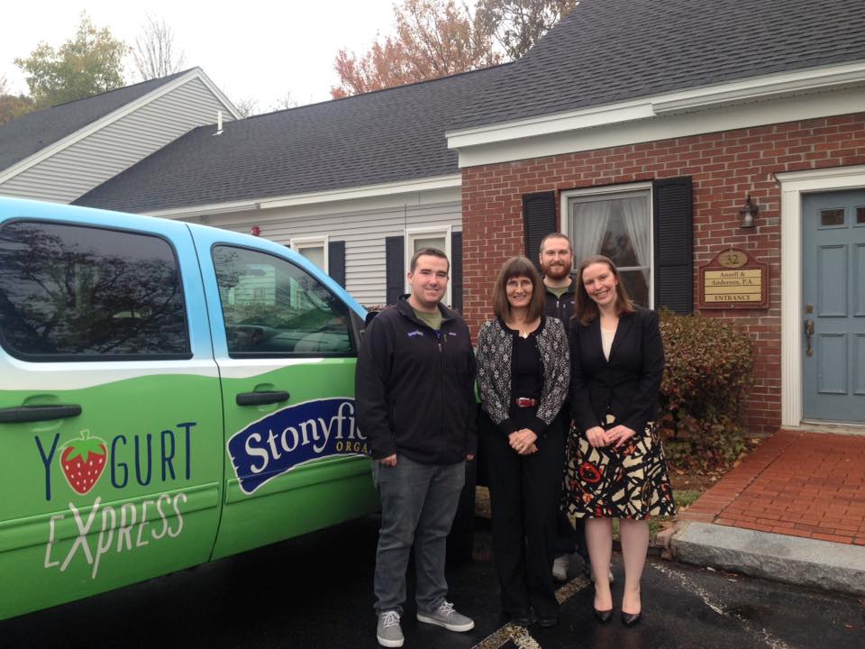 We were recently visited by the New Hampshire Campaign for Legal Services, who stopped by with their friends at Stonyfield to thank Ansell & Anderson for our annual support as a Pacesetter firm. Pacesetter firms are firms who annually contribute at least $500 per attorney on staff at the firm.